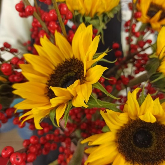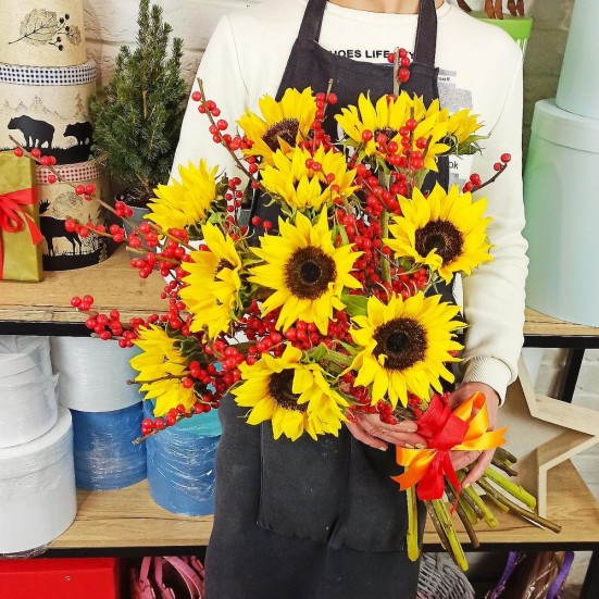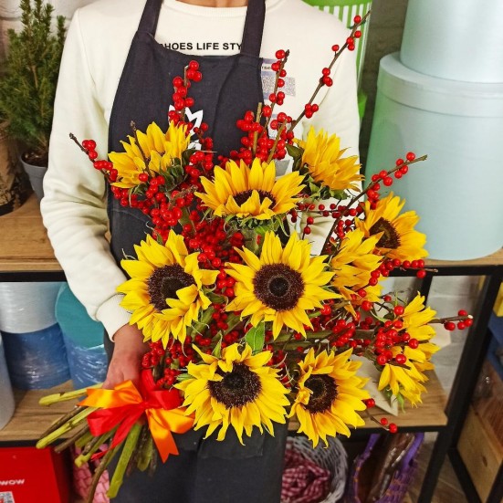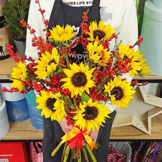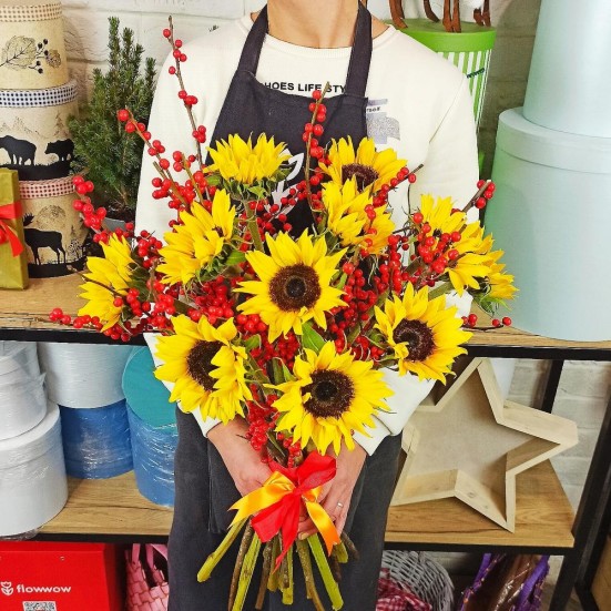 Букет «Подсолнухов и рябины»