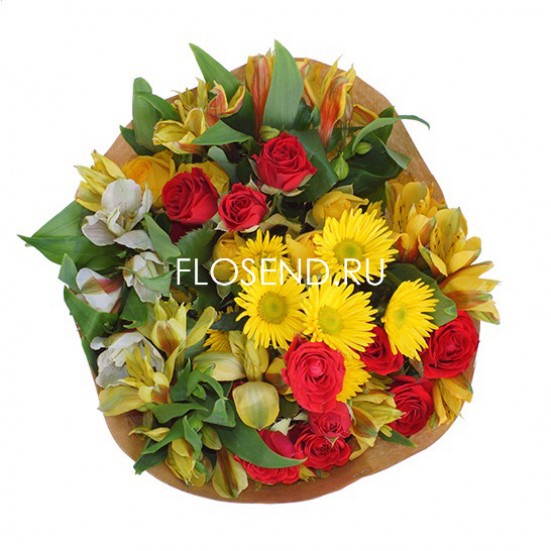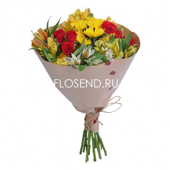 Букет из хризантем и кустовой розы и альстромерий